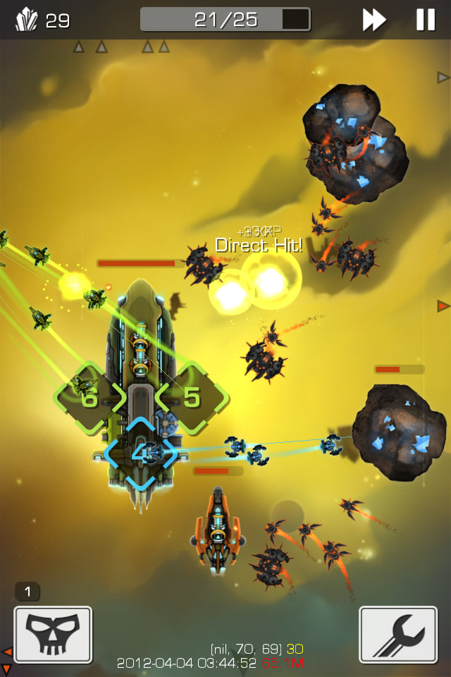 Artillery ships work differently; they fire their cannons wherever you tap on-screen. Having only one warp in is underwhelming, but two or more gives you the option to barrage a section of the map with all manner of space missiles. They do incredible damage, but require a lot more attention and aiming skill than the somewhat autonomous fighter craft.
