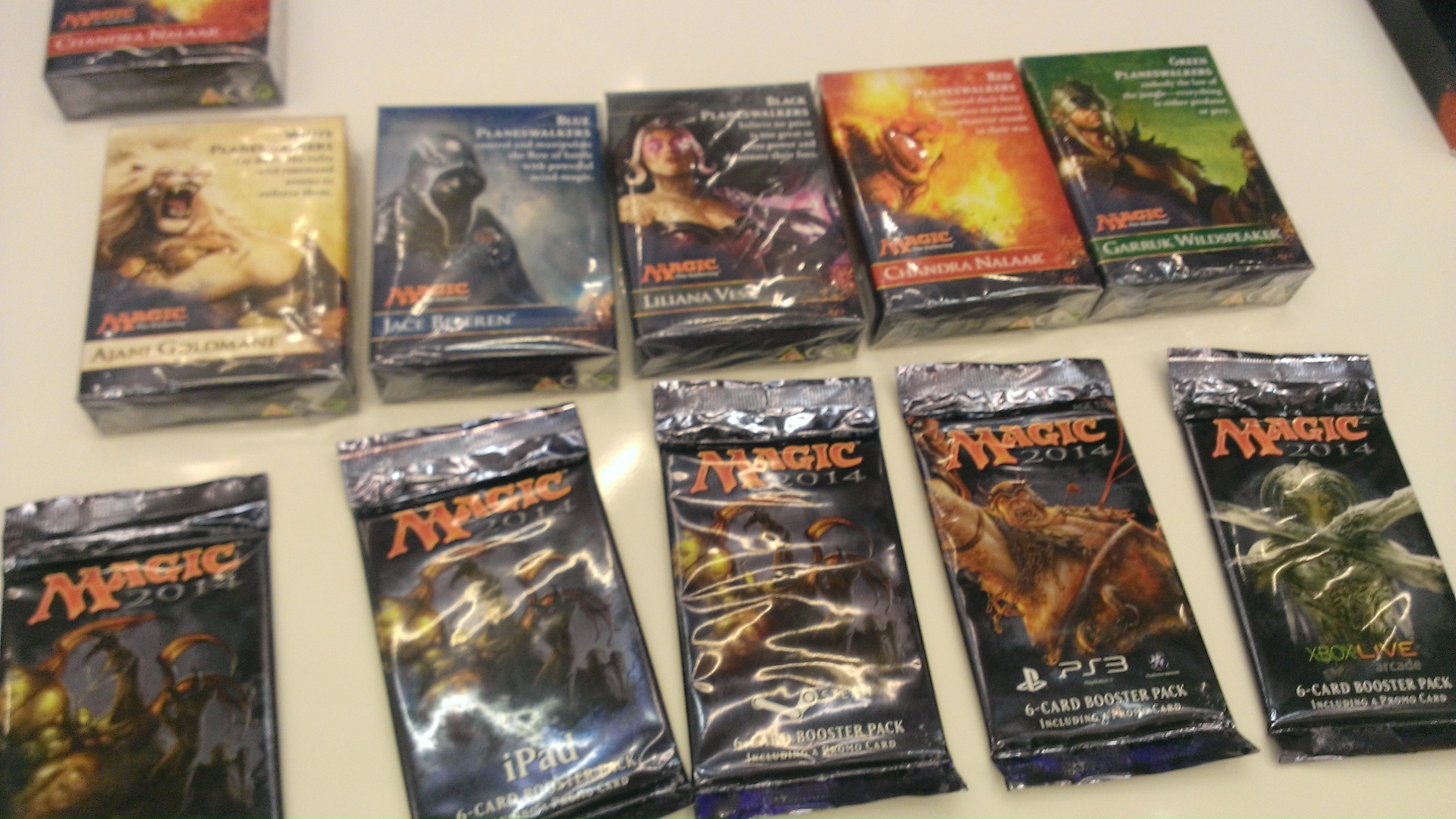 Also of note: in addition to mini boosters (including foil M14 cards) players will receive for buying any/all versions of Duels of the Planeswalkers, geeky gamers will also receive a starter deck in the color of their choice. It’s probably nothing a veteran would get excited about, but newbies will get a nice head start in their collections for “free.”